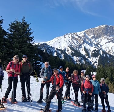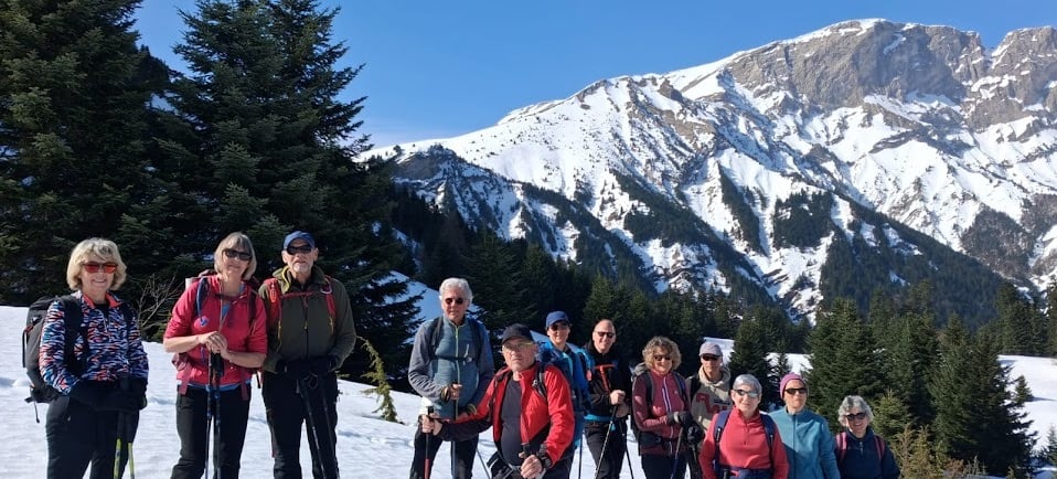 Les précipitations neigeuses de ce mois de février ont assuré un bon enneigement et nous nous retrouvons une douzaine ce dimanche matin pour découvrir la forêt de Poligny en raquettes. Les derniers jours, très doux, ont fait fondre la neige au-dessous de 1300 m et c'est donc à pied que nous commençons à monter vers le Prés la Chaup, en dessous de la falaise de la Clape. Après 45 mn, il est temps de chausser les raquettes car la présence de neige, peu glacée, entrave notre progression. Nous suivons facilement la piste forestière puis une piste de trail montant fortement dans la forêt ou l'effort se fait sentir. Une rondelle ne faisant pas le printemps, certains ont malencontreusement oublié celles-ci sur leurs bâtons. Vont-ils rebrousser chemin ? Que Nenni ! La solidarité du groupe s'exprime et tout rentre dans l'ordre. Nous débouchons au Pré La Chaup , endroit sublime s'il en est. Un balcon sur le Champsaur. Ne le dites pas trop fort, seuls les "initiés" connaissent cet endroit à la fois sublime et peu fréquenté. Nous longeons un moment la falaise et essayons d'apercevoir des animaux. Chou blanc mais le site est si beau que nous l'oublions vite. La descente sur la Cabane des Pierres se fait sans encombre et nous décidons, malgré l'heure peu tardive, de piqueniquer. La table et les bancs, déneigés, nous apportent un confort bien mérité. Certains sortent des chaises de la cabane et s'installent au soleil, face au col de Chétive. Beaucoup connaissent déjà ces lieux, en été, pour son pierrier et ses nombreux framboisiers. Vers 13h, nous repartons en direction de la cascade Saint Catherine. D'abord bien enneigé, le sentier en manque ensuite cruellement et nous enlevons les raquettes. Dans un des nombreux couloirs que nous traversons, une avalanche a obstrué le passage. Nous traversons en raquettes la langue terminale. Une première pour la majorité d'entre nous. Nous poursuivons jusqu'à un petit abri en bois. Un petit AR pour observer la cascade et il est l'heure de rechausser les raquettes pour redescendre. Nous arrivons rapidement à proximité de la Chapelle St Etienne et finissons les derniers cent mètres sur un terrain déneigé. Une très belle journée, une belle classique en raquettes, sur un terrain "sauvage ". A renouveler l'année prochaine.